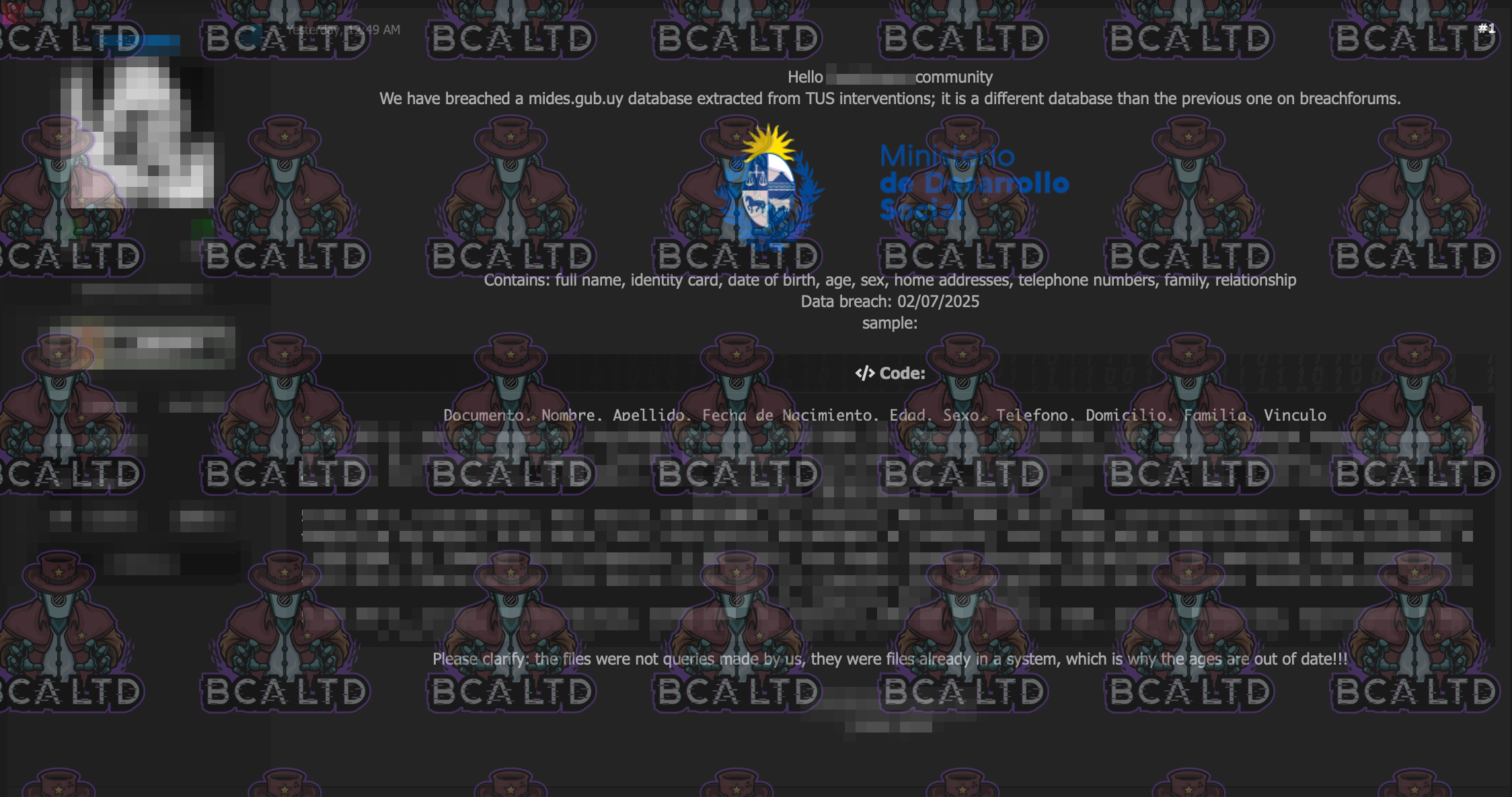 TA leaked a database containing 560,000 records from TUS (Tarjeta Uruguay Social), including names, national ID numbers, mobile phone numbers, addresses, and family relationships.- Country: 🇺🇾