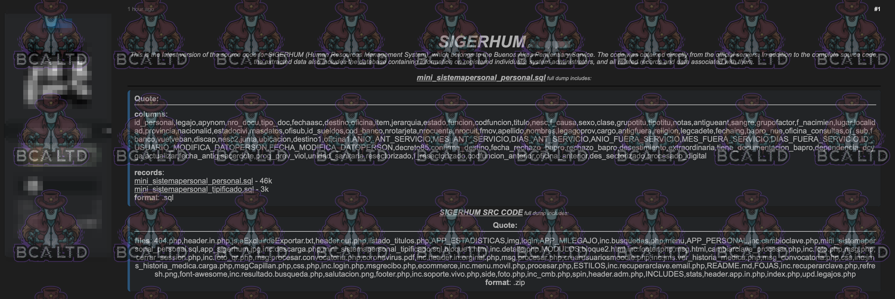 TA leaked the full source code and DB of the SIGERHUM (Human Resources System) from the Buenos Aires Penitentiary Service, exposing personal data of personnel.- Country: 🇦🇷