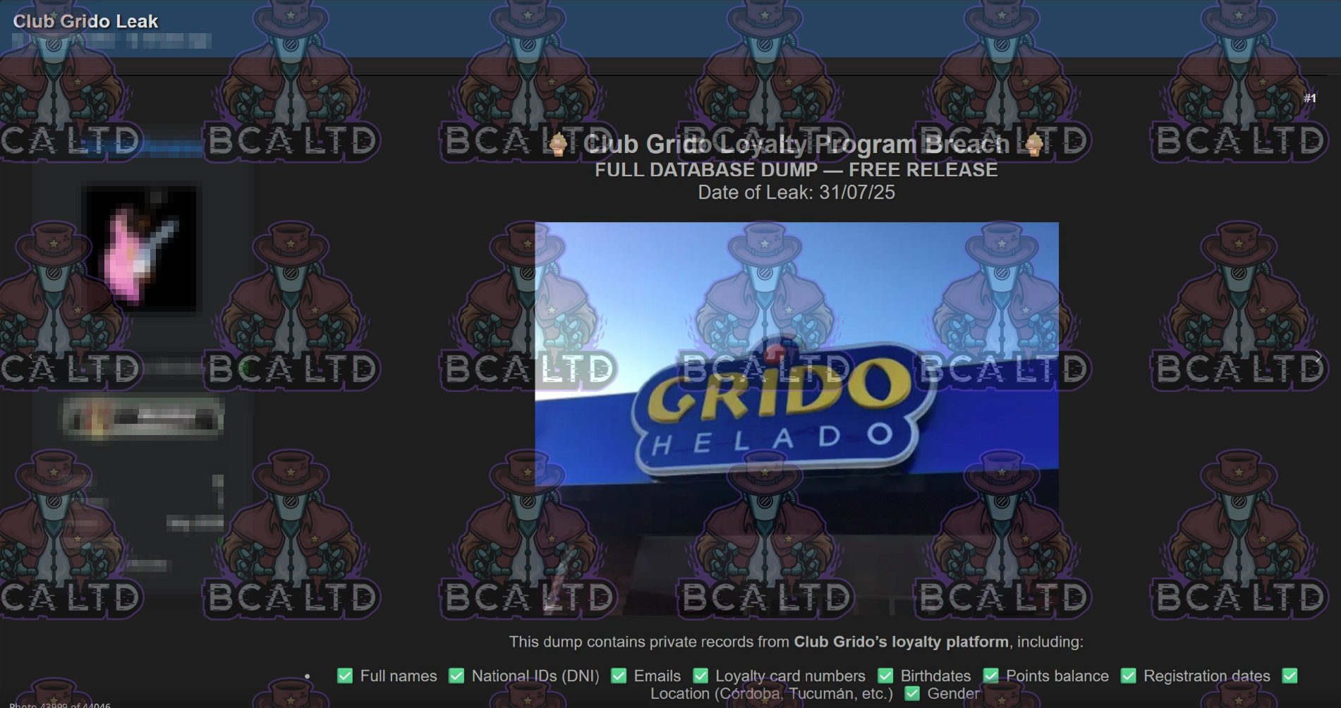 TA leaked the full database from Heladerías Grido’s loyalty programme, exposing sensitive user information from across the country.- Country: 🇦🇷