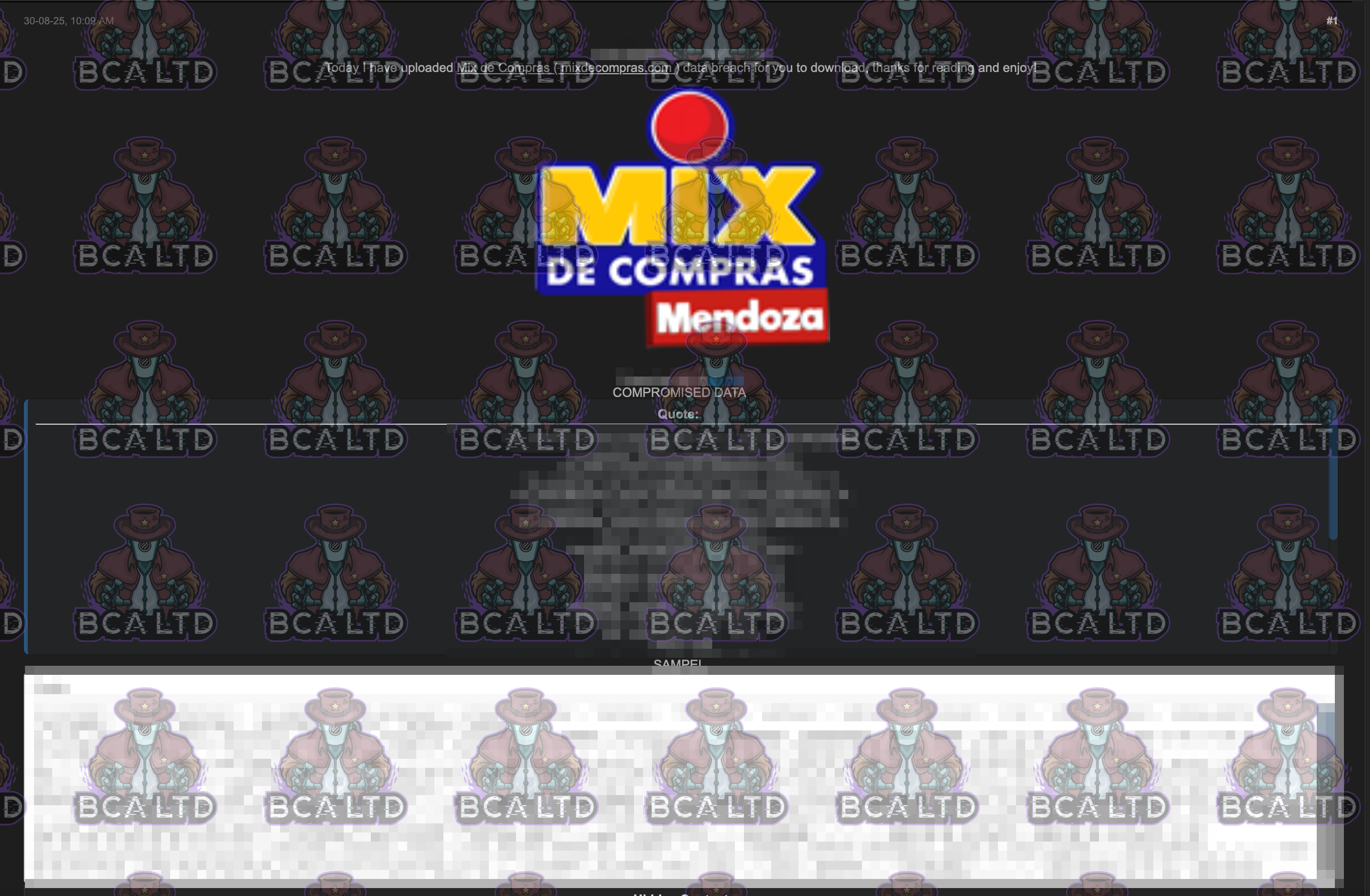 TA leaked a database from “Mix de Compras Mendoza” containing user details and purchase orders.- Country: 🇦🇷