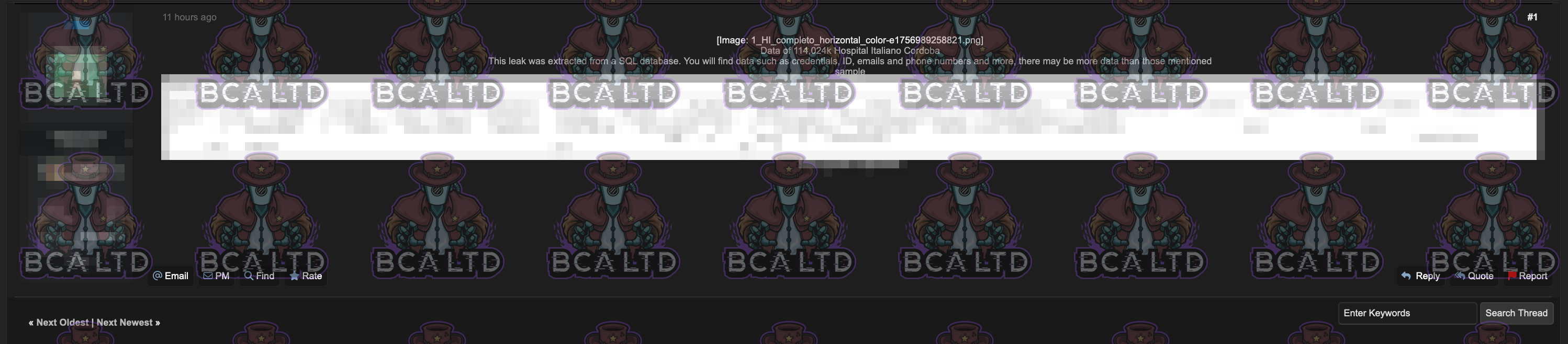 TA leaked a database from Hospital Italiano de Córdoba containing 114,024 patient records, including sensitive information and contact details.- Country: 🇦🇷