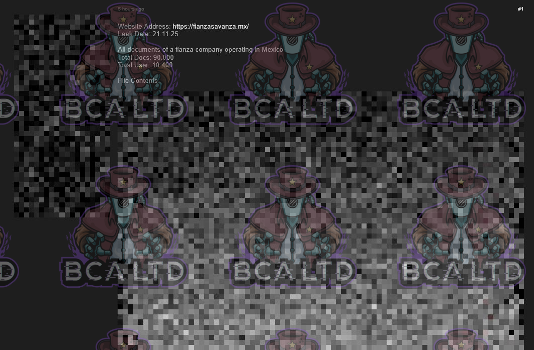 TA leaked a DB belonging to Fianzas Avanza containing documents and information related to users.- Country: 🇲🇽