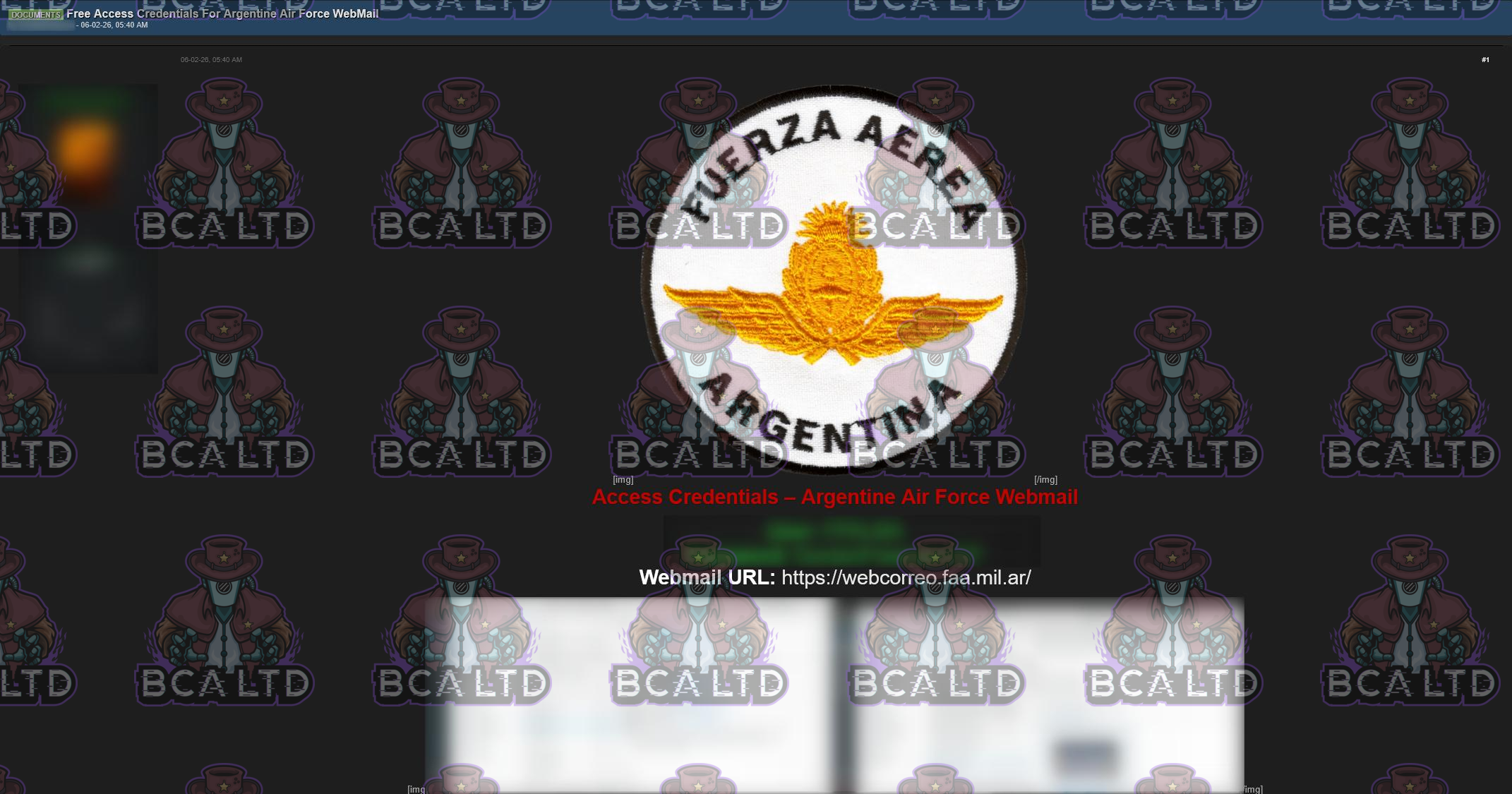 TA leaked a DB belonging to Fuerza Aerea Argentina containing unauthorized Webmail access to Argentine Air Force.- Country: 🇦🇷