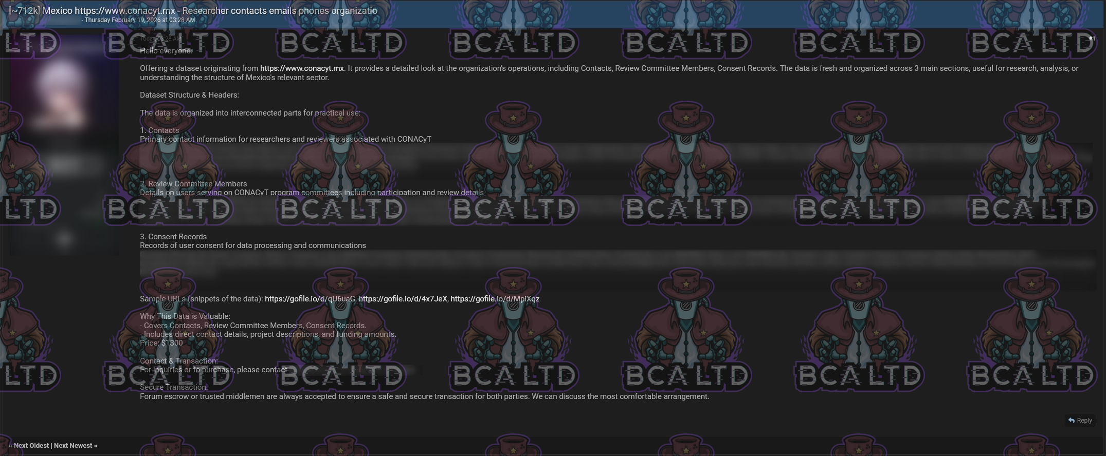 TA leaked a DB belonging to Consejo Nacional de Humanidades, Ciencias y Tecnologías (CONACYT) containing 712,000 records includes researcher contact information, committee participation records, consent and compliance documentation.- Country: 🇲🇽