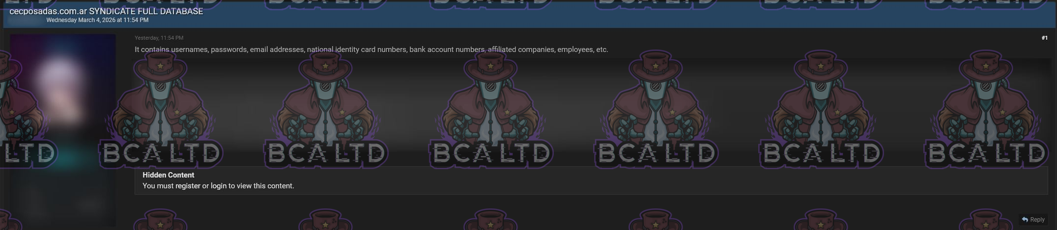 TA leaked a DB belonging to Centro de Empleados de Comercio de Posadas (CECPOSADAS) containing user credentials, email addresses, national identity numbers, bank account information, and records related to affiliated companies and employees.- Country: 🇦🇷