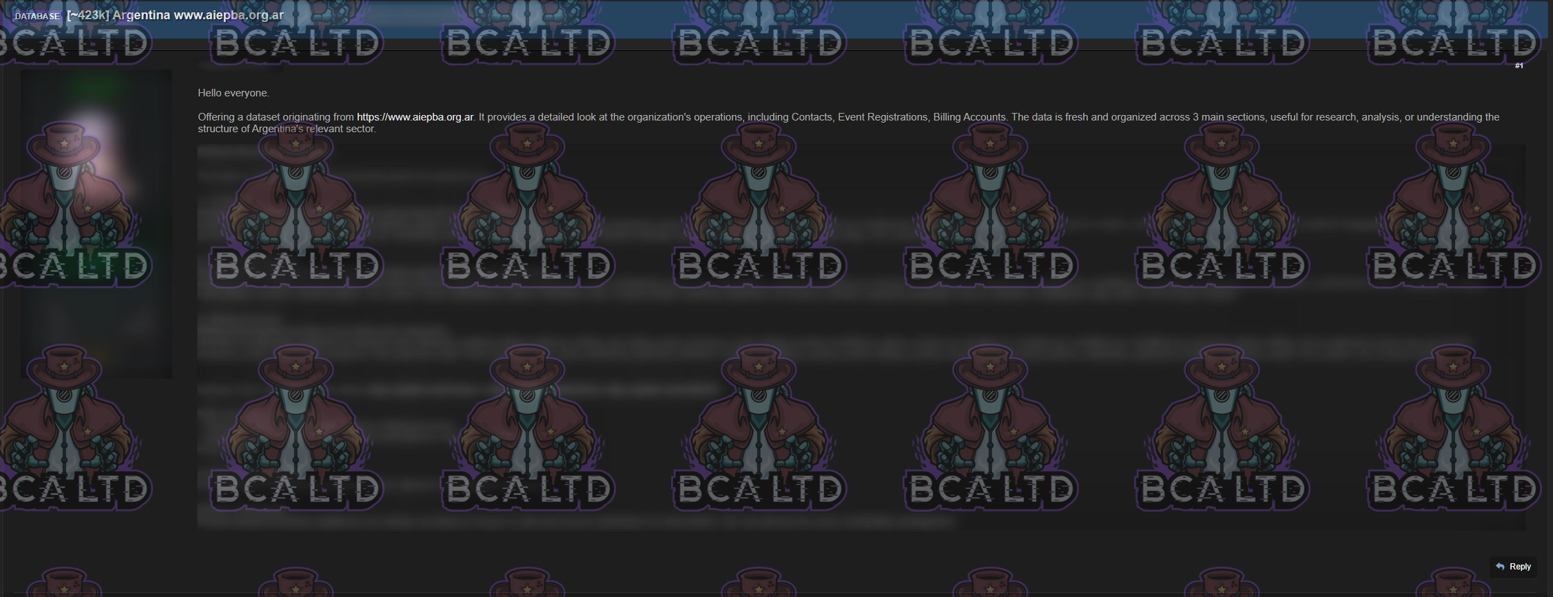 TA sells a database belonging to Asociación de Institutos de Enseñanza Privada de Argentina (AIEPA) containing data across multiple sections, including contacts, event registrations, and billing/account information.- Country: 🇦🇷