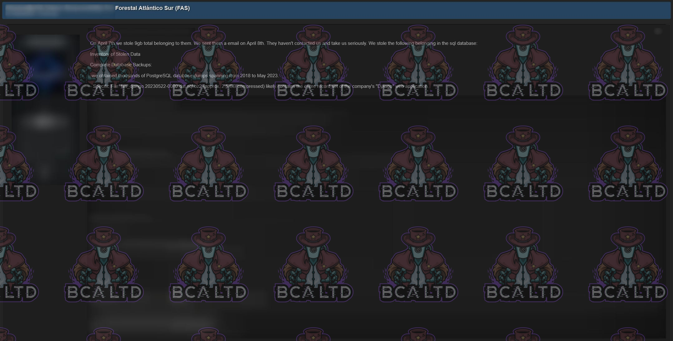 DataBreach: Forestal Atlántico Sur
