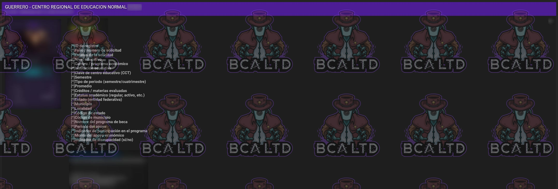 TA leaked a DB belonging to Centro Regional de Educación Normal Guerrero containing detailed student academic and personal records including names, enrollment data, academic program details, geographic identifiers, scholarship information, economic support amounts, and disability indicators.- Country: 🇲🇽